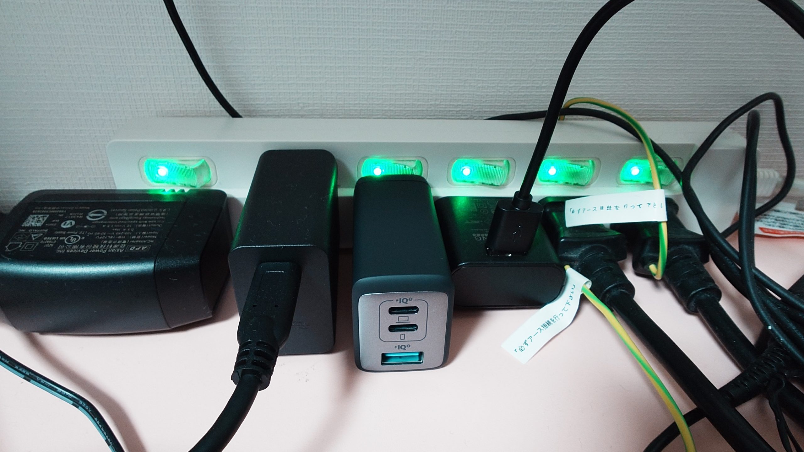 我が家のPC周りのコンセントにすっぽり挿入。これで急速充電ができるなんて、すばらしいな。1個あれば十分だし、逆に1個は持ってたほうが仕事もプライベートも快適間違いなしですな(´・ω・`)