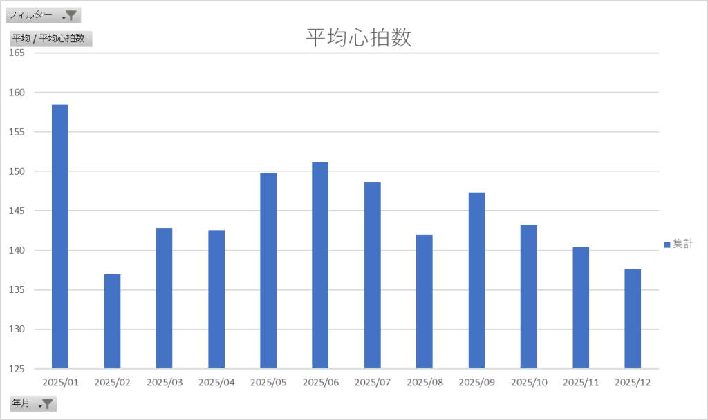 2月が以上に低いのは、たぶん2部連のジョグが多かったがゆえに、軽いメニューが反映されているだけかな?